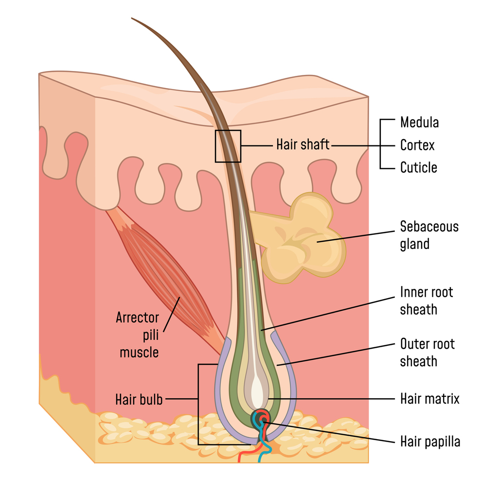 - Main route of incorporation - through blood circulation during hair formation. Each hair follicle has a blood vessel to feed the hair growth cells. The drugs are carried from the blood into the hair follicle and bound to the inside of the hair shaft (melanin).